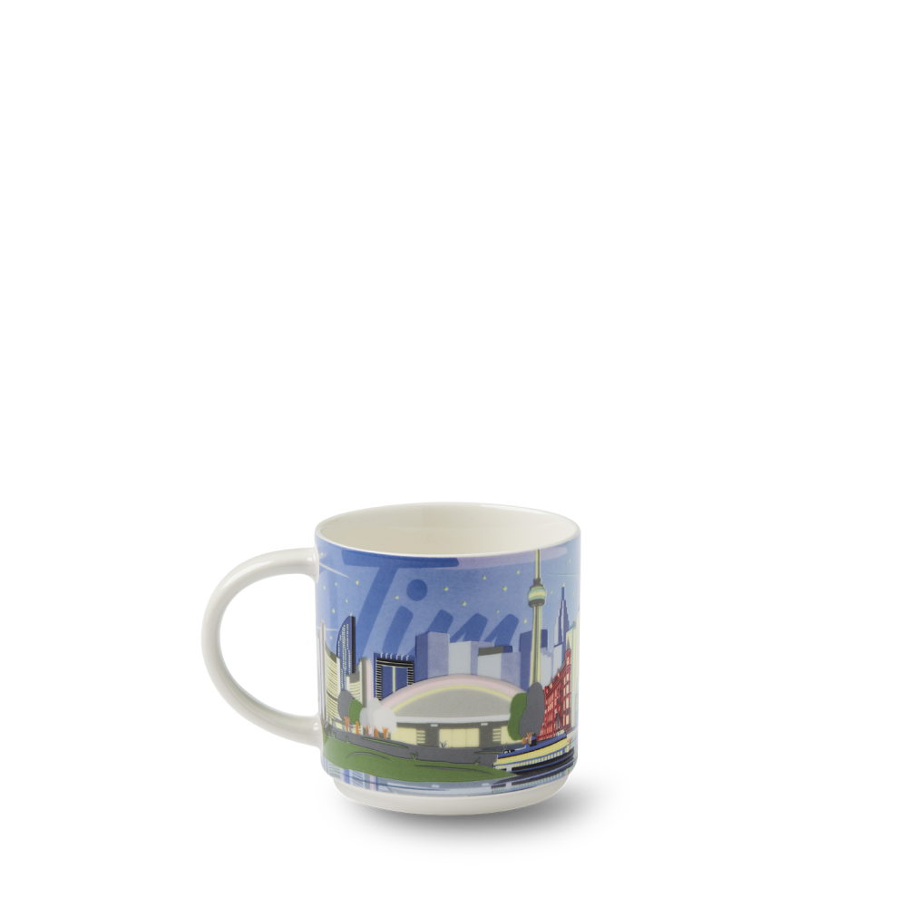 The Tim Hortons Travel Collection pays tribute to the diverse natural beauty of Canada with a Toronto-themed ceramic mug and stainless-steel travel mug. The limited-edition and collectible ceramic mug features original artwork by Canadian artist Eric Pond.