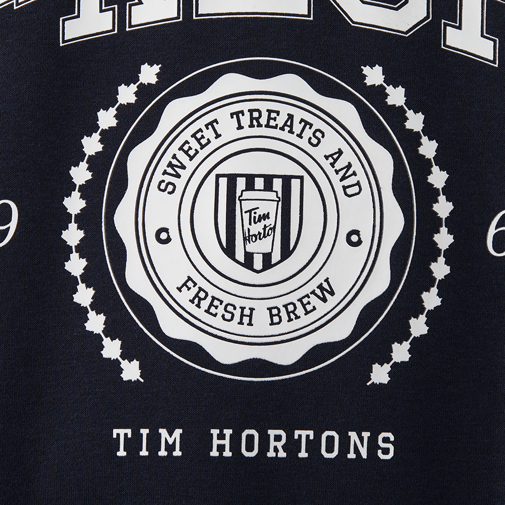 Always Fresh – Since 1964. Wear your love for Tims with this. comfortable. stylish crewneck in classic varsity navy.